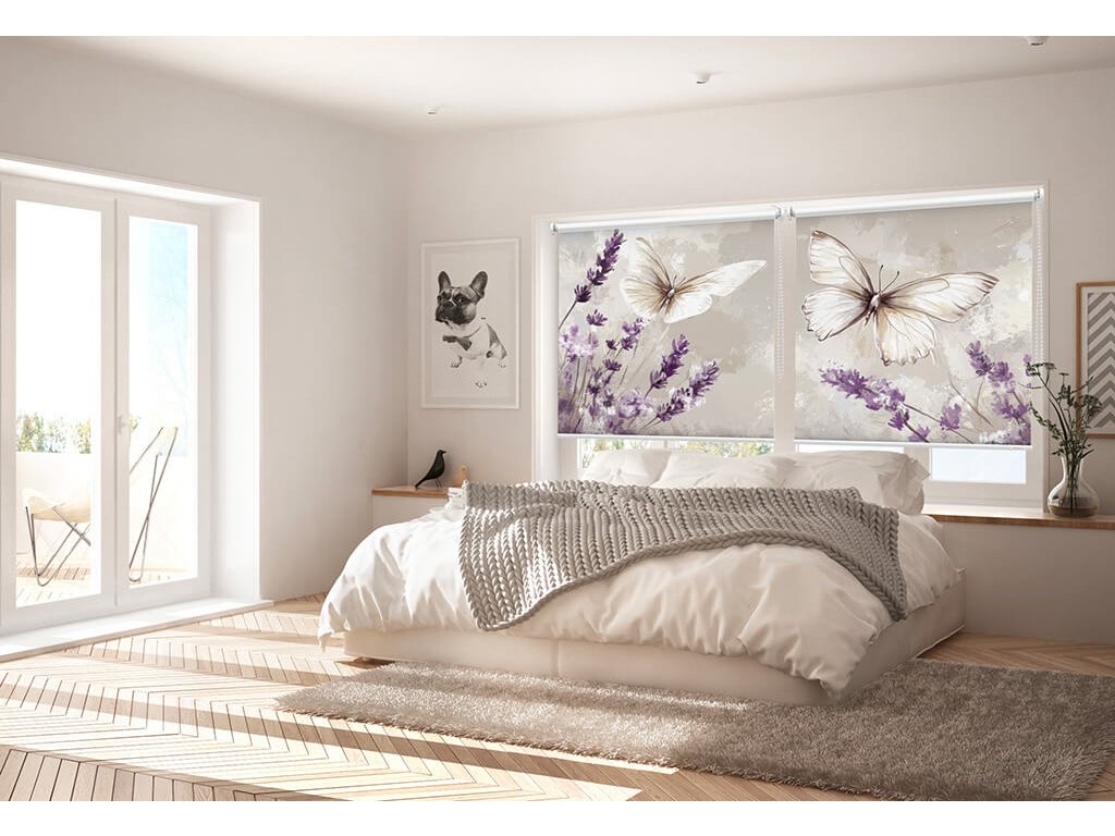 Stylová fotoroleta s levandulí a motýly spojuje funkčnost a design. Chrání interiér před slunečním zářením a zároveň působí jako originální dekorace. Vyrobena z kvalitního materiálu, snadná na údržbu a dlouhodobě krásná.
