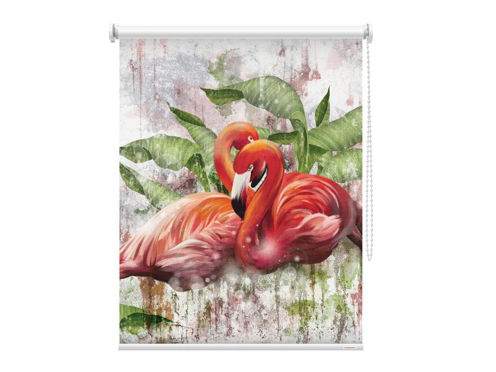 Spojení krásy a funkce. Fotoroleta s potiskem s motivem plameňáků je dokonalou volbou pro ty, kdo chtějí do interiéru vnést jemnost, originalitu i ochranu před sluncem. Elegantní doplněk, který osvěží každý prostor.