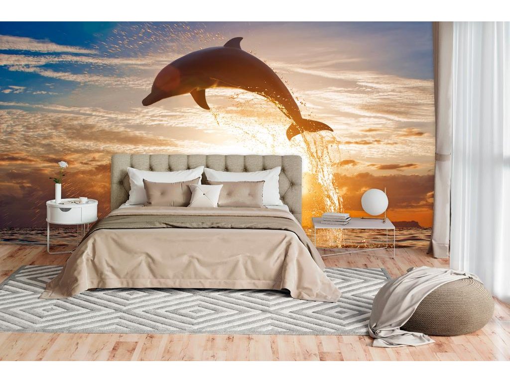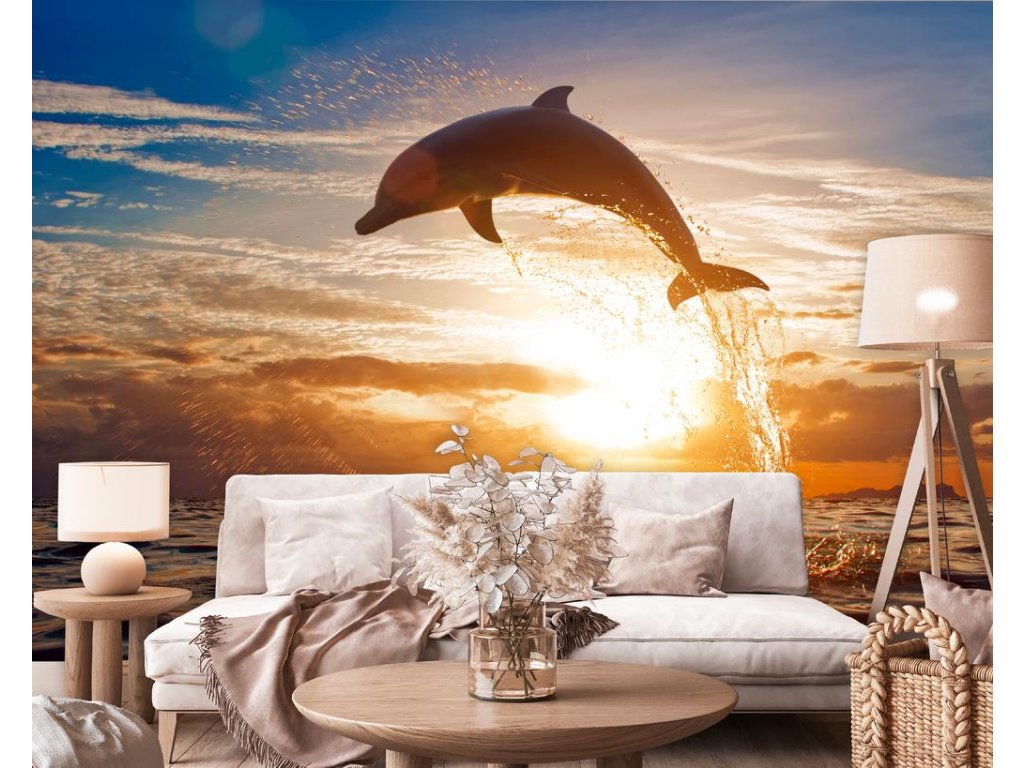Tento úchvatný motiv zachycuje okamžik, kdy delfín ladně skáče nad oceánem, zatímco sluneční paprsky osvěcují hladinu vody. Spojení přírodních krás oceánu a volně žijících zvířat přináší do interiéru klidnou a inspirující atmosféru. Ideální pro milovníky přírody, oceánu a volnosti. Perfektní volba pro obývací pokoj, koupelnu nebo jakýkoli prostor, který si žádá dotek exotiky a relaxace.