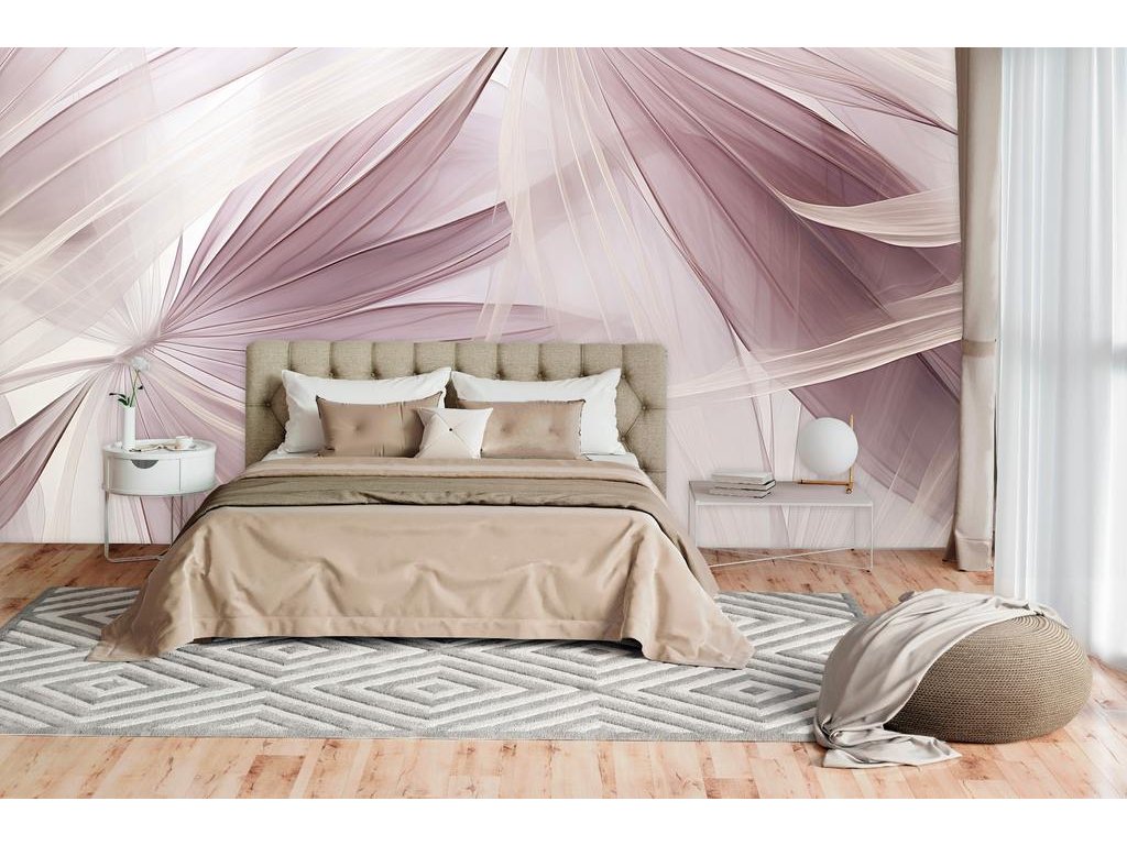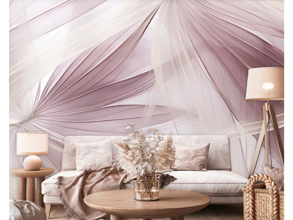 Elegantní a jemný motiv v odstínech růžové a béžové přináší do interiéru klidnou a harmonickou atmosféru. Plynulé linie listů vytvářejí dojem pohybu a lehkosti, který perfektně doplní moderní i klasické interiéry. Tato fototapeta je ideální volbou pro ložnice, obývací pokoje nebo relaxační zóny.