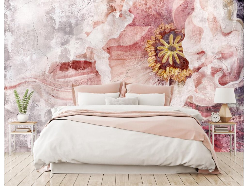 - Design: Malovaný květ s efektem staré popraskané zdi, v jemných odstínech růžové a šedé.