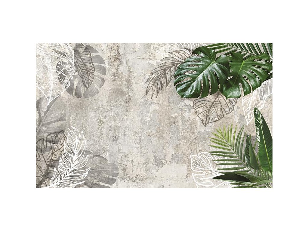 Fototapeta s motivem „Listy v tichu stěn“ vnese do vašeho prostoru nevtíravý luxus a klid. Betonová textura a zelené listy tvoří nadčasový designový prvek, který oživí každou stěnu – od obývacího pokoje po vstupní halu.