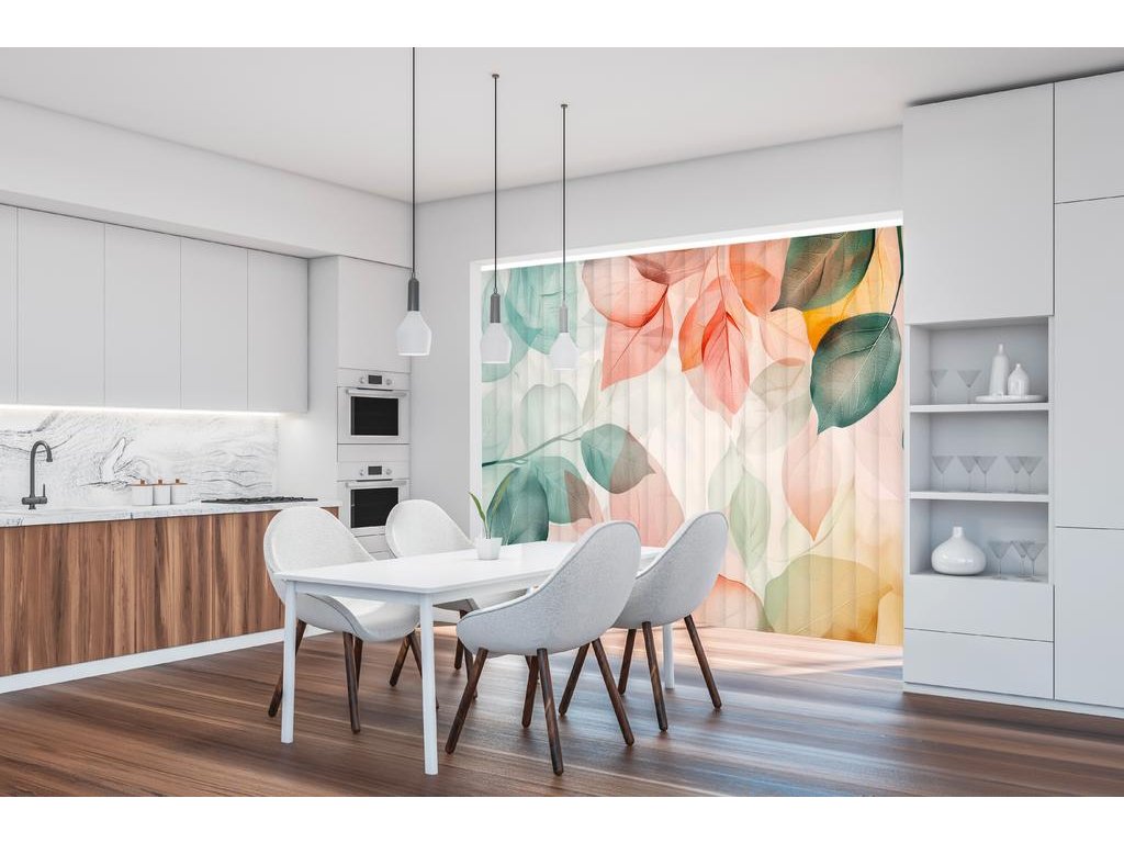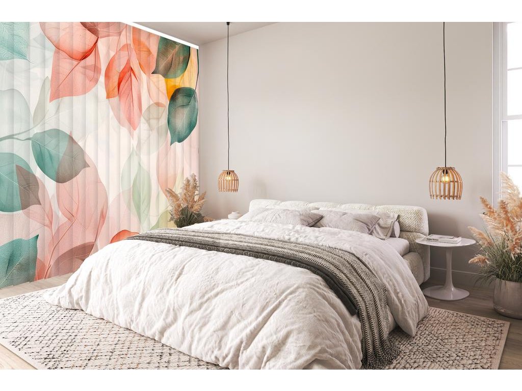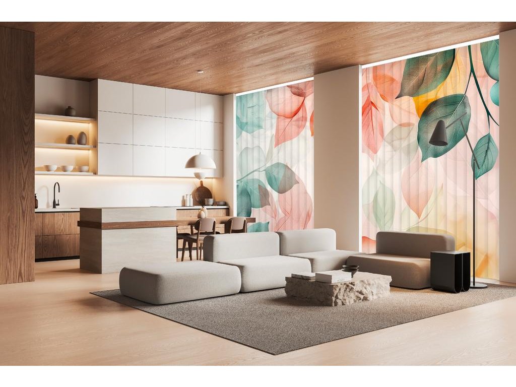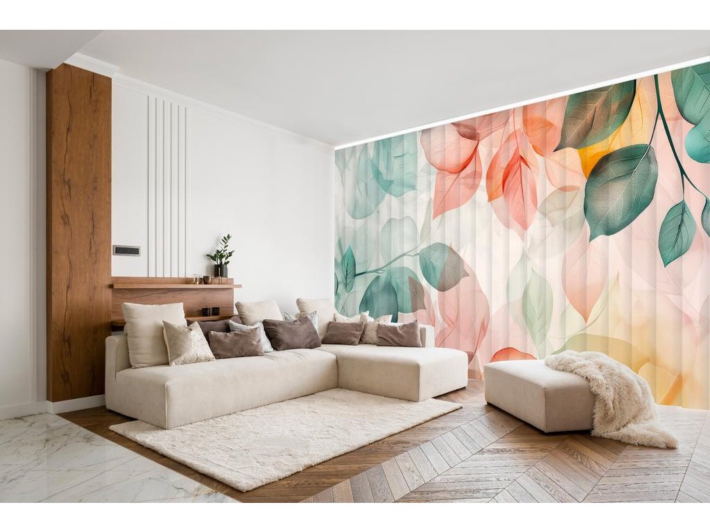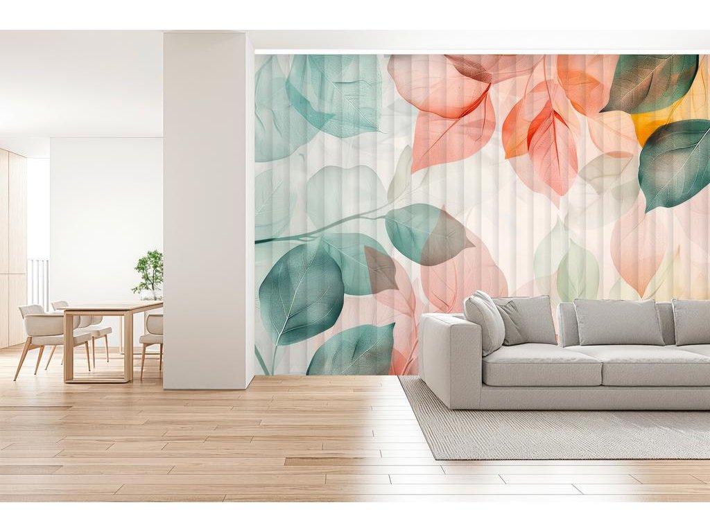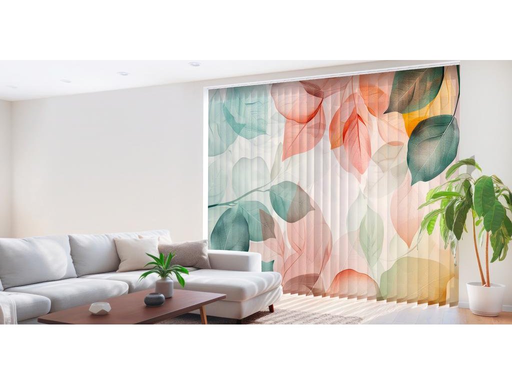 Objevte sílu jemnosti. Designové fotožaluzie s motivem Listová symfonie propojují praktické stínění na míru s neobyčejným estetickým zážitkem. Jemné pastelové listy v tlumených tónech zelené, růžové a meruňkové rozprostřou ve vašem interiéru klid, světlo a přírodní harmonii.