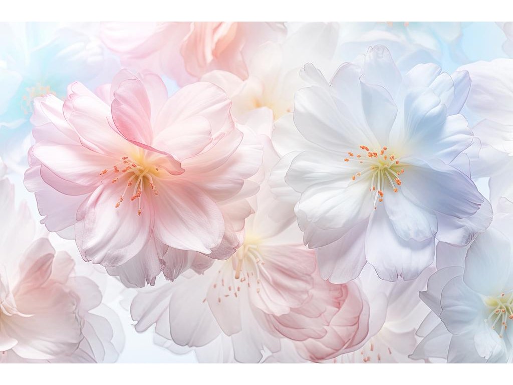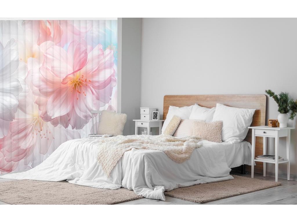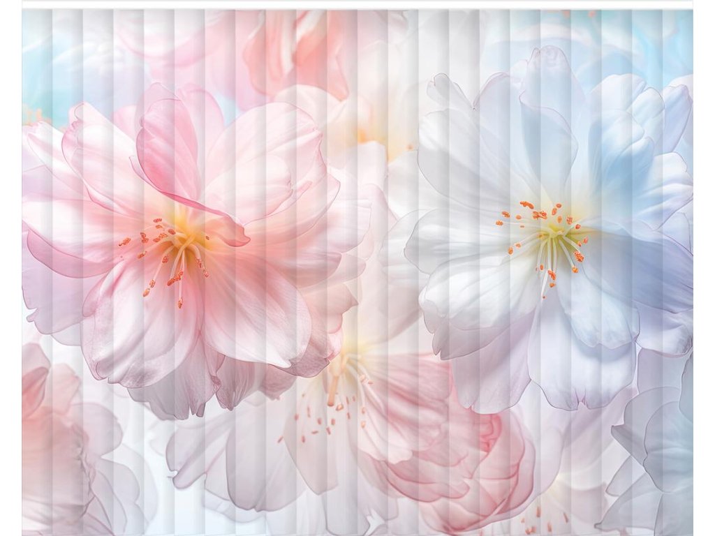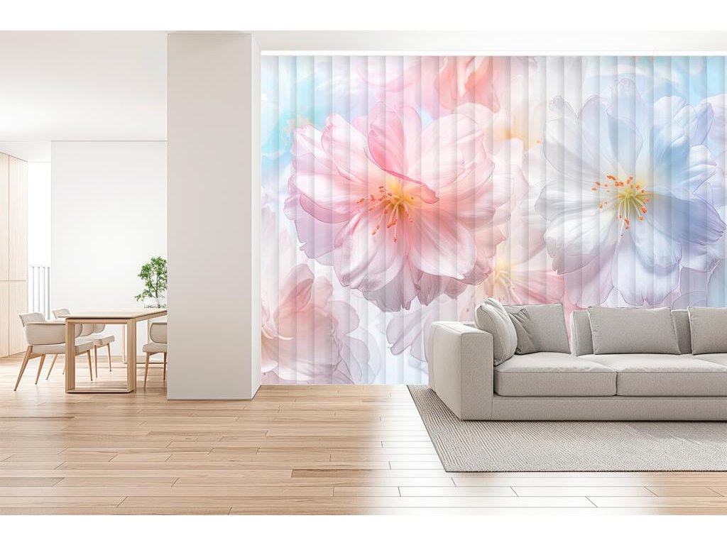 Tento jemný květinový motiv zachycuje půvab rozkvétajících květů v pastelových odstínech růžové a bílé. Elegantní a něžné květy přinášejí do interiéru atmosféru klidu, lehkosti a krásy. Ideální pro ty, kteří chtějí svůj prostor proměnit v harmonickou oázu. Perfektní do ložnic, obývacích pokojů nebo relaxačních zón.