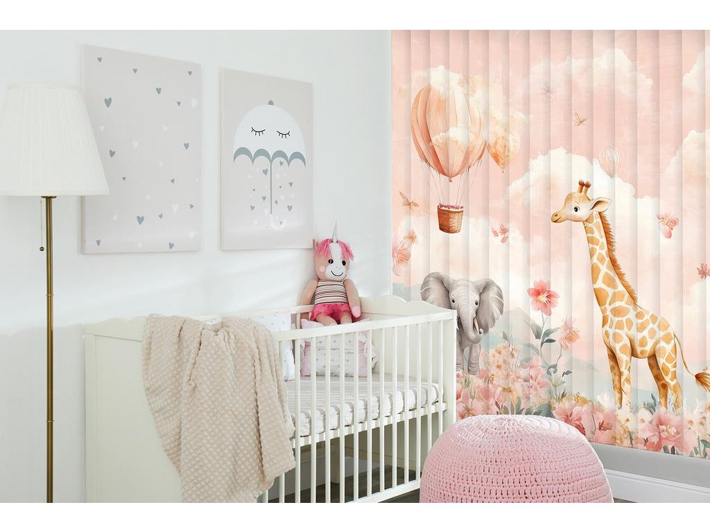 Zastínění, které pohladí oko i duši. Vertikální žaluzie s potiskem Růžový safari sen spojuje funkčnost a kouzelný design v jednom – ideální pro dětské pokoje, kde se snoubí světlo, bezpečí a pohádka.