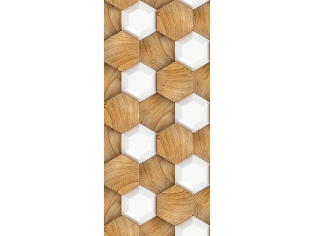 Samolepící fototapeta na dveře - 3D Dřevěná mozaika
