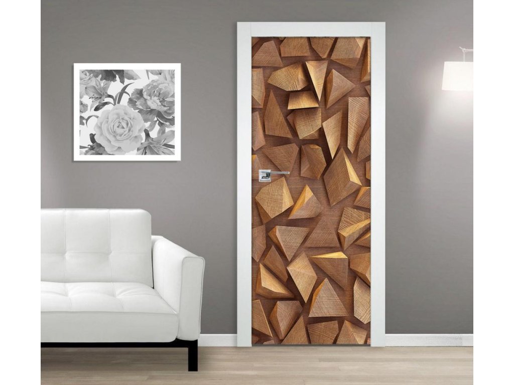 Samolepící fototapeta na dveře - 3D Dřevěné tvary
