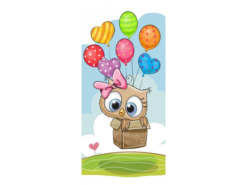 Samolepící fototapeta na dveře - Sovička s balónky
