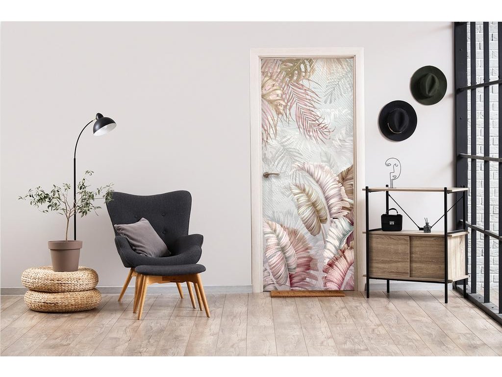 Samolepící fototapeta na dveře - Tropická elegance v pastelových tónech