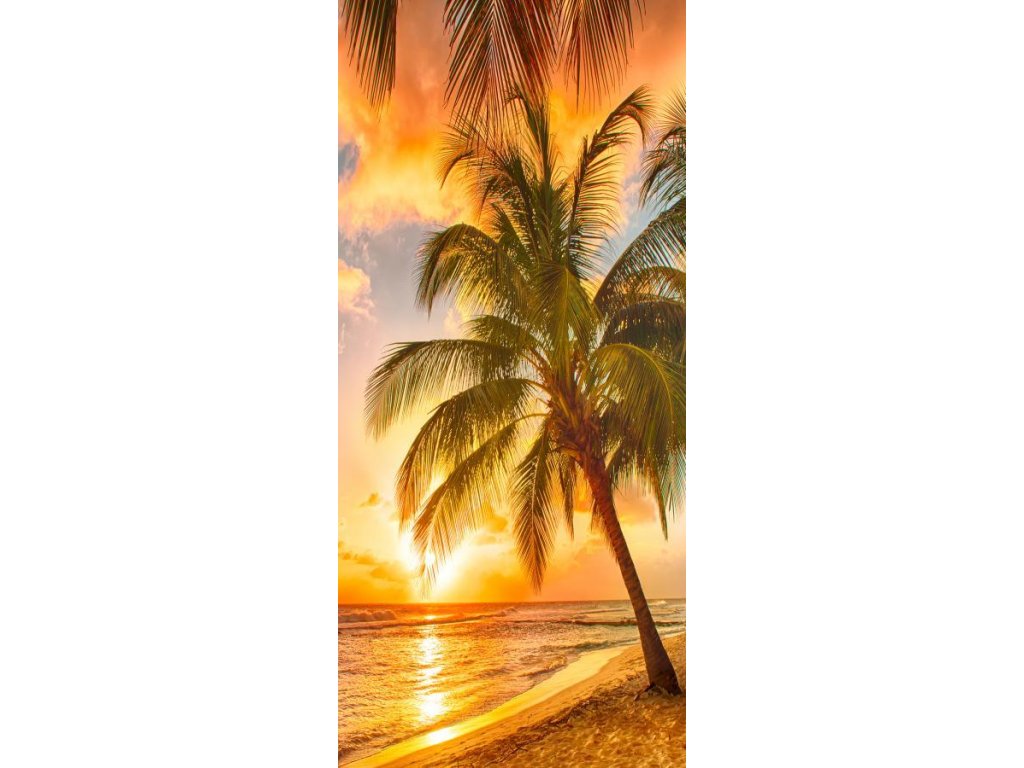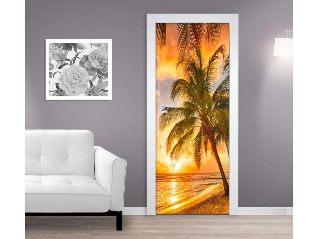 Samolepící fototapeta na dveře s palmami při západu slunce – otevřete dveře do ráje
